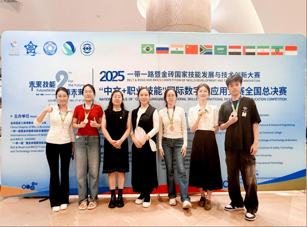 荣誉属于过去,奋斗指向未来。我们将把大赛成果转化为教学改革的催化剂,持续优化人才培养体系,致力于培养兼具国际视野、扎实职业技能、数字化应用能力与优秀中文沟通能力的高素质技术技能人才,以实实在在的育人成果,为学校高质量发展注入更强劲的动力!