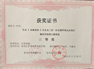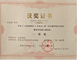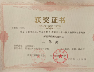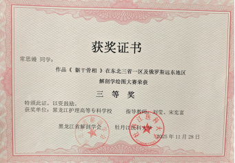 我校高度重视此次比赛,基础医学部解剖教师团队严格遵循大赛评审专业标准,从解剖结构准确性、绘图技法专业性、艺术表现力及创新性等多个维度进行综合评议,经过严格审核和精心筛选,最终从全校绘图作品中,精选出4幅优秀作品代表龙护专参赛。在指导教师和同学们的共同努力下,凭借深厚的专业功底、出色的绘图技艺与创新的艺术表现,在150多幅参赛作品中脱颖而出,荣获一等奖1项、二等奖1项、三等奖2项,喜获佳绩,充分展现了我校解剖学教育的丰硕成果与学子们的卓越风采。
