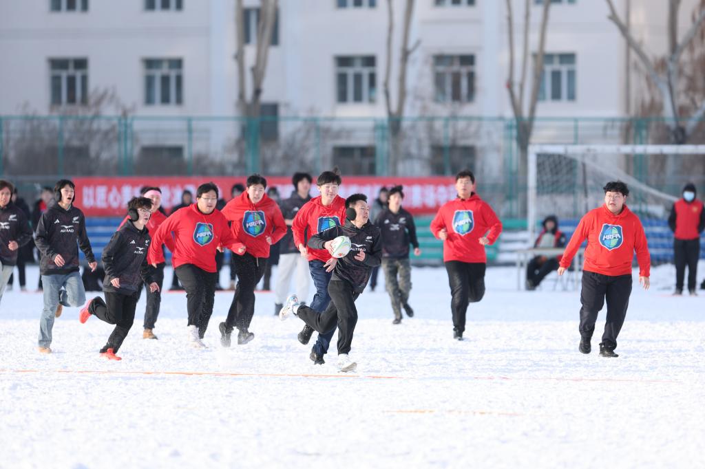 本次赛事由国家体育总局小球运动管理中心、中国橄榄球协会主办,众多单位协办及支持,赛事规格高、竞争强度大。吸引了来自浙江、上海、江苏、辽宁、黑龙江等多个省市的54支顶尖队伍、800余名运动员齐聚冰城,在零下25度的雪地赛场展开激烈角逐。寒风凛冽挡不住我校队员的热血与斗志,面对实力强劲的对手,队员们沉着冷静、稳扎稳打,无论是激烈的身体对抗还是精妙的战术传导,都展现出扎实的训练功底。关键时刻,他们顶住压力、奋勇争先,一次次突破对手防线,一次次成功化解危机,用汗水与毅力书写了我校体育事业的崭新篇章。