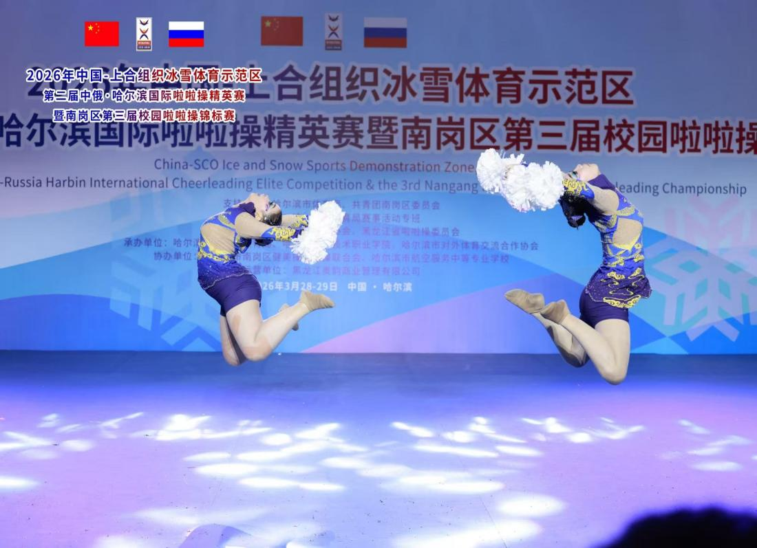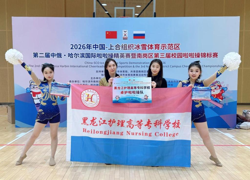 近日,2026年中国-上合组织冰雪体育示范区第二届中俄·哈尔滨国际啦啦操精英赛暨南岗区第三届校园啦啦操锦标赛圆满落幕。本次赛事规模盛大,汇聚了俄罗斯6个州近300名运动员,以及国内5个城市1400余名运动员,总计1700余名参赛选手同台竞技、各展风采,上演了一场精彩纷呈的啦啦操体育盛宴。在激烈的角逐中,我校卓护啦啦操队在领队孙成,主教练李晓岩、田梦鸽的悉心带领下,凭借扎实的专业功底、整齐划一的动作编排、饱满昂扬的精神风貌,一路过关斩将、奋勇拼搏,最终凭借精彩表现脱颖而出,成功斩获公开青年丙组-双人花球冠军。同时,李晓岩、田梦鸽两位主教练凭借专业的执教水平和科学的训练指导,双双荣获赛事“优秀教练员”称号,为学校赢得了荣誉。